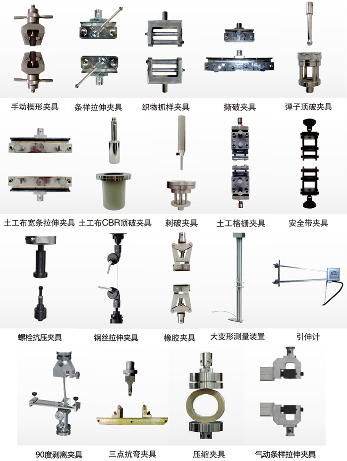 7.土工格柵夾具、安全帶夾具、螺栓抗壓夾具、鋼絲拉伸夾具、橡膠夾具(這幾類基本都是聽名字就知道是用來測(cè)試什么產(chǎn)品)