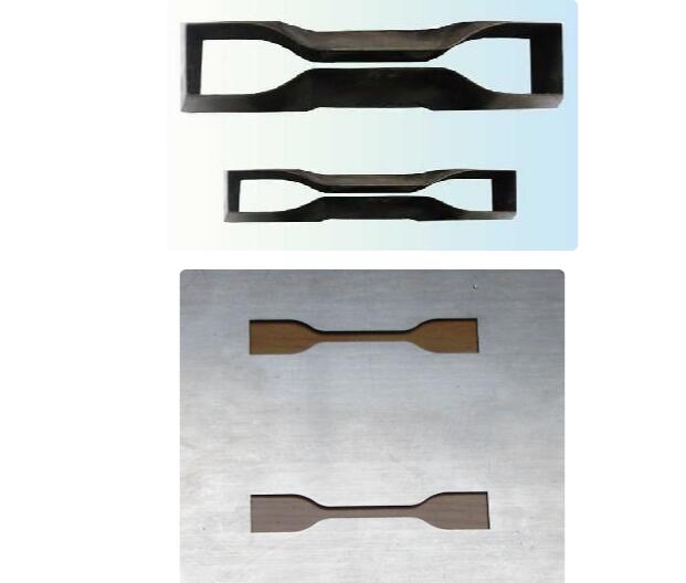 將準備好的裁刀放在需試片上,再放入沖壓設備中進行沖壓,啞鈴型樣品就這樣做好了。